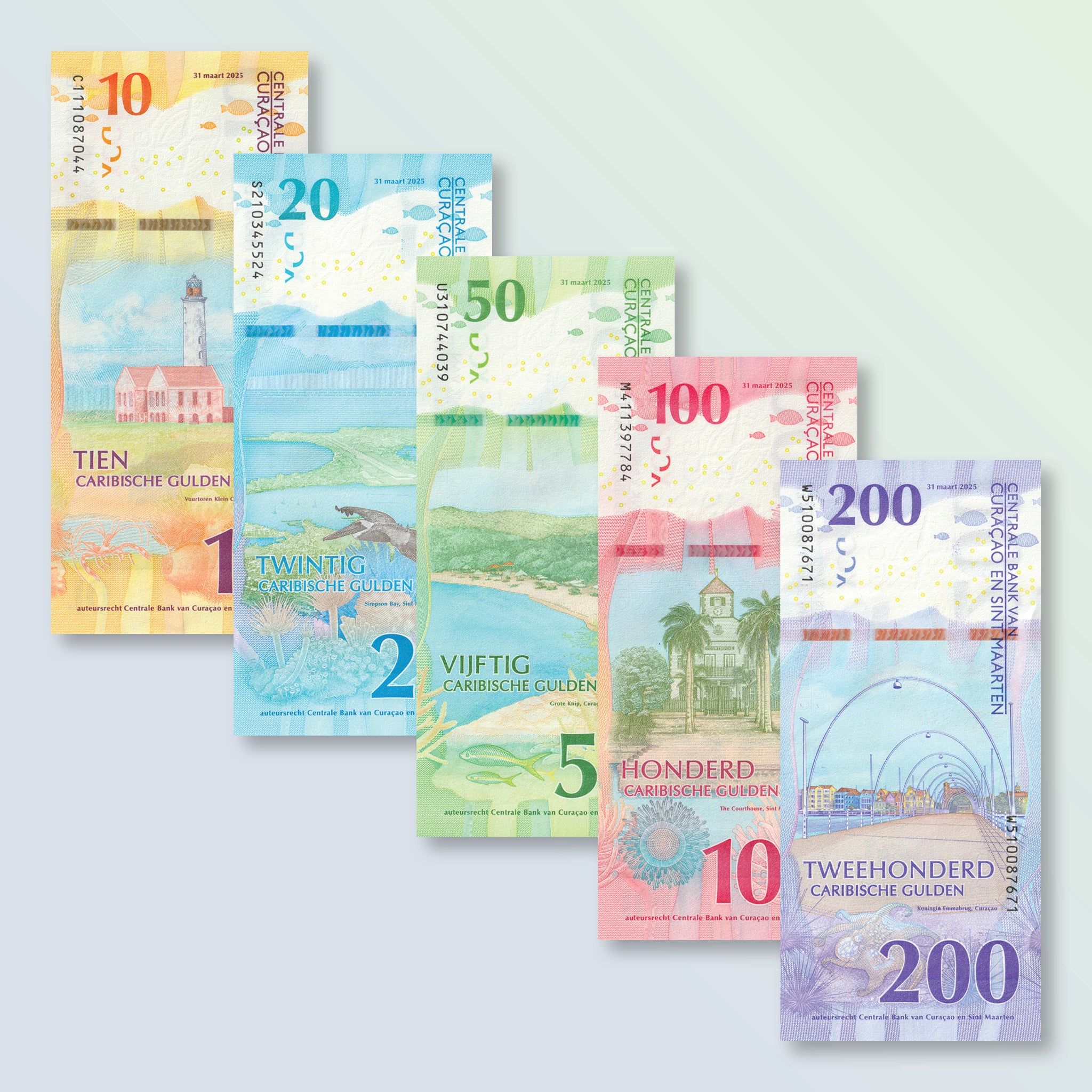 This is a full set of the world's newest currency, the Caribbean Guilder, issued on 31 March 2025.