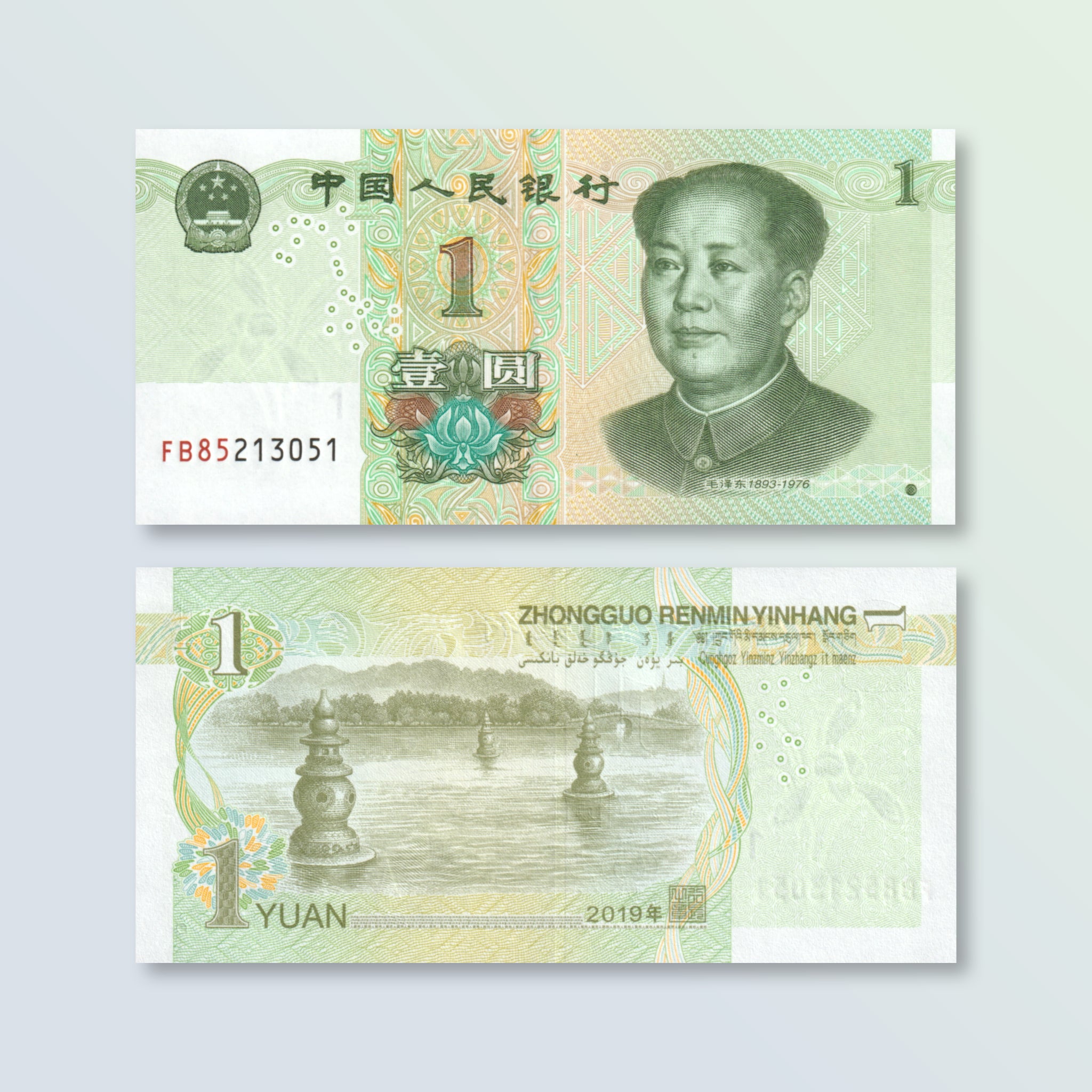 Front:  Portrait of Mao Zedong. National emblem of the People's Republic of China; orchid flowers.