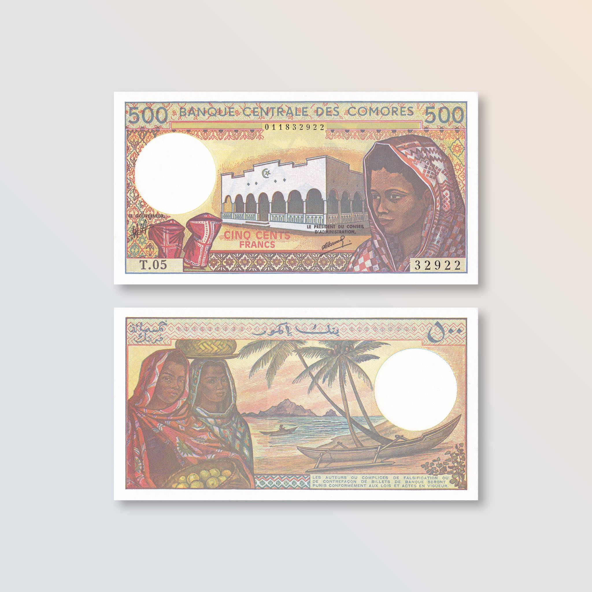 Comoros 500 Francs, 1986, B301d, P10b, UNC