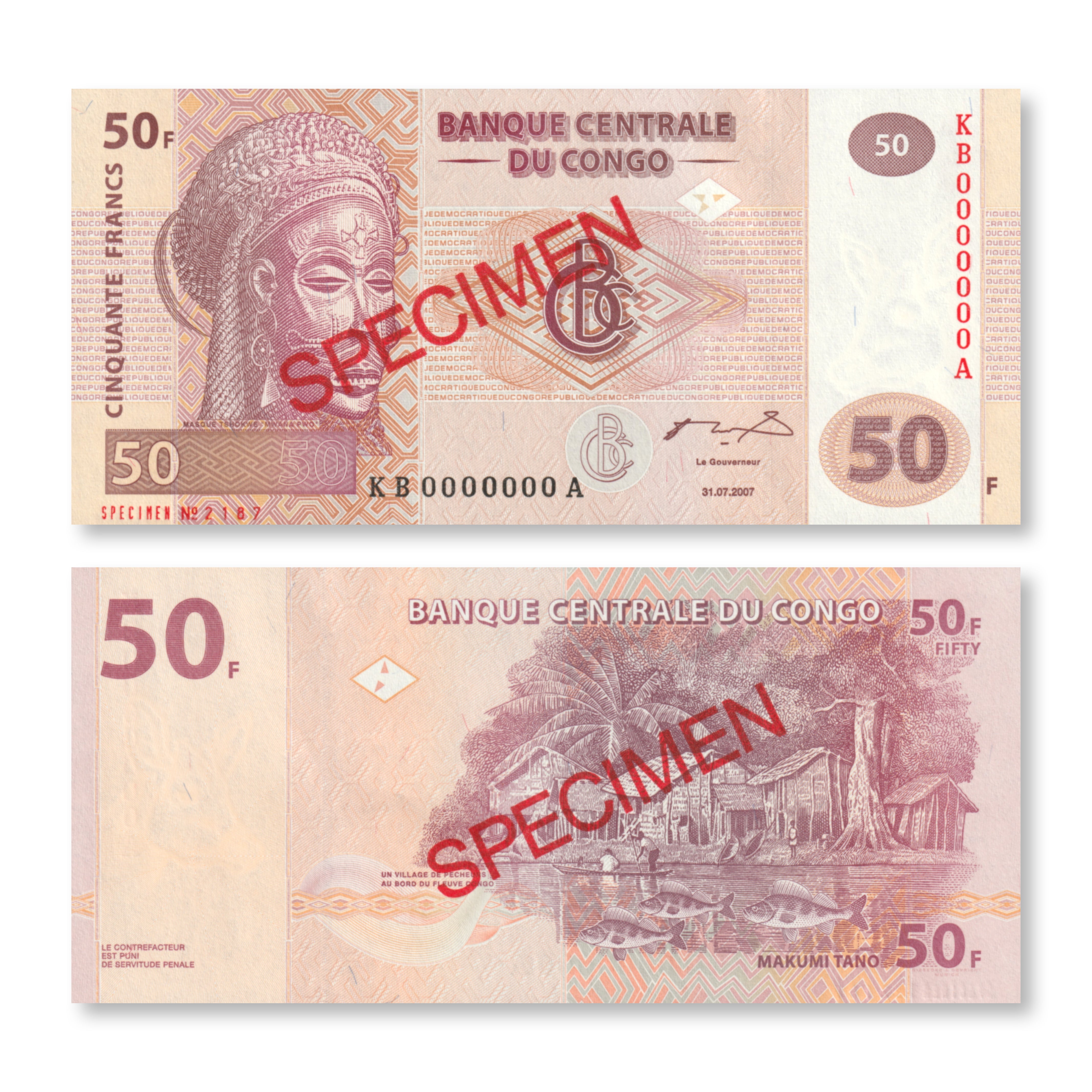 Congo Democratic Republic 50-Franc Specimen, 2007, B319as, P97s, UNC