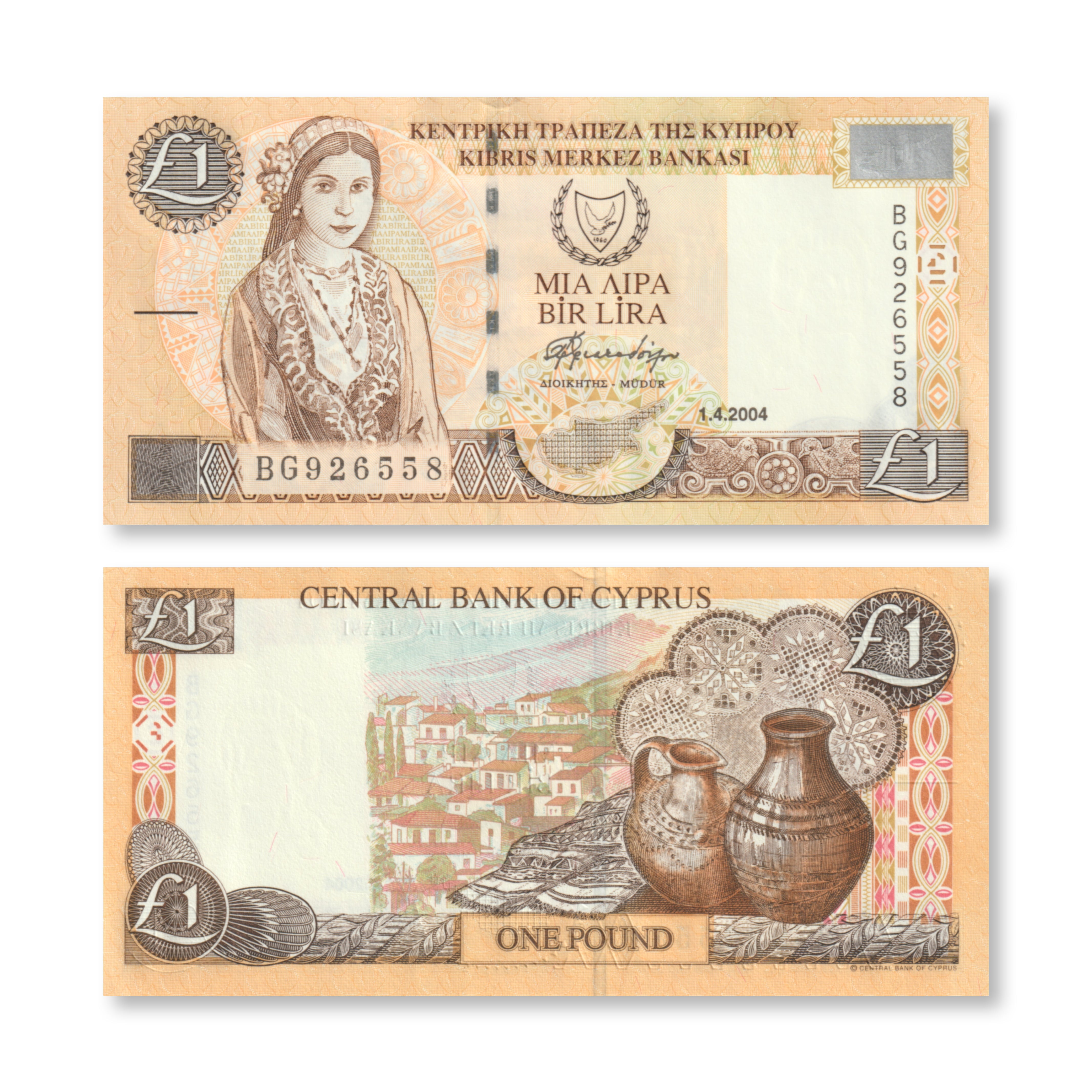 Cyprus 1 Pound, 2004, B318d, P60d, UNC
