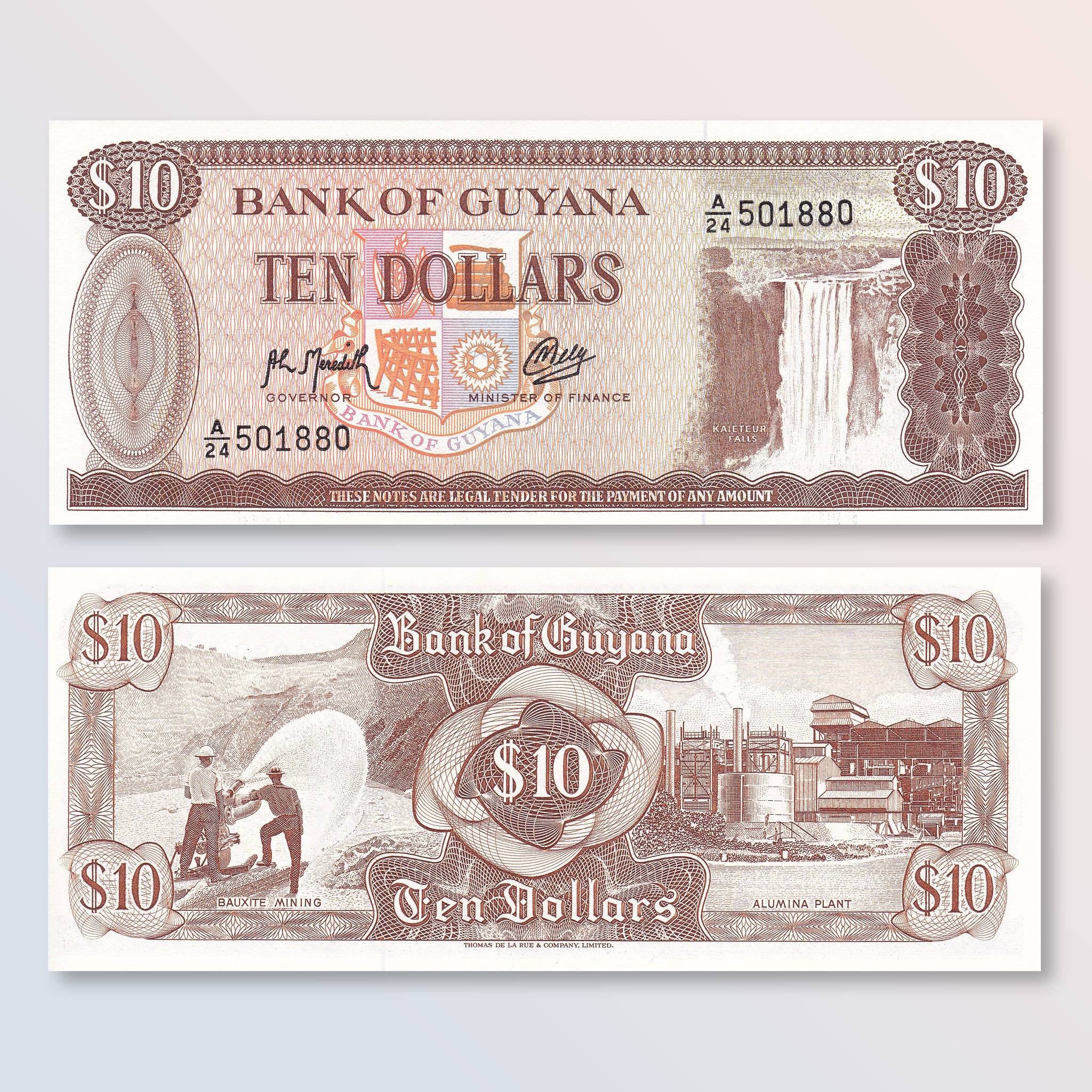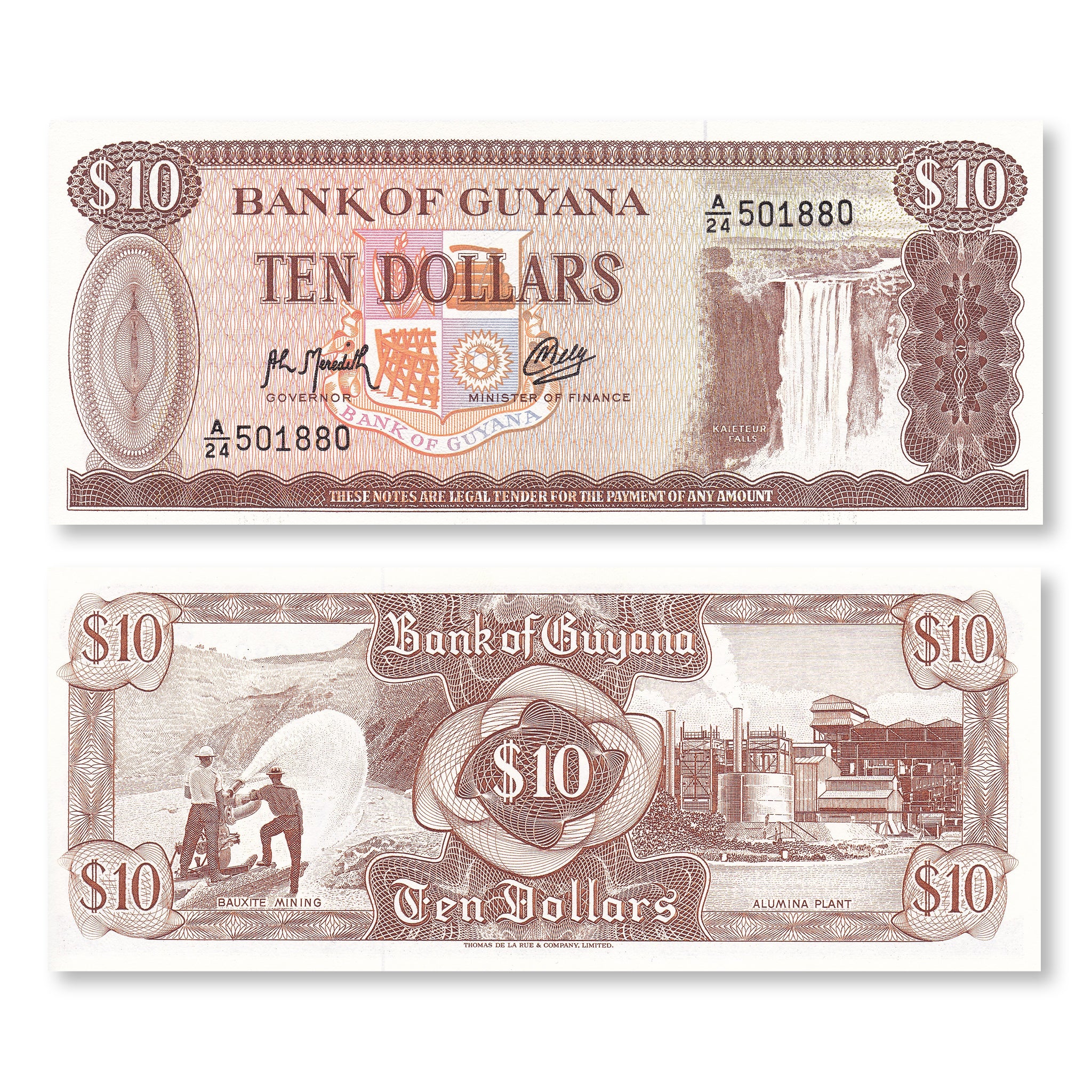 Front: Bank of Guyana crest; Kaieteur Falls