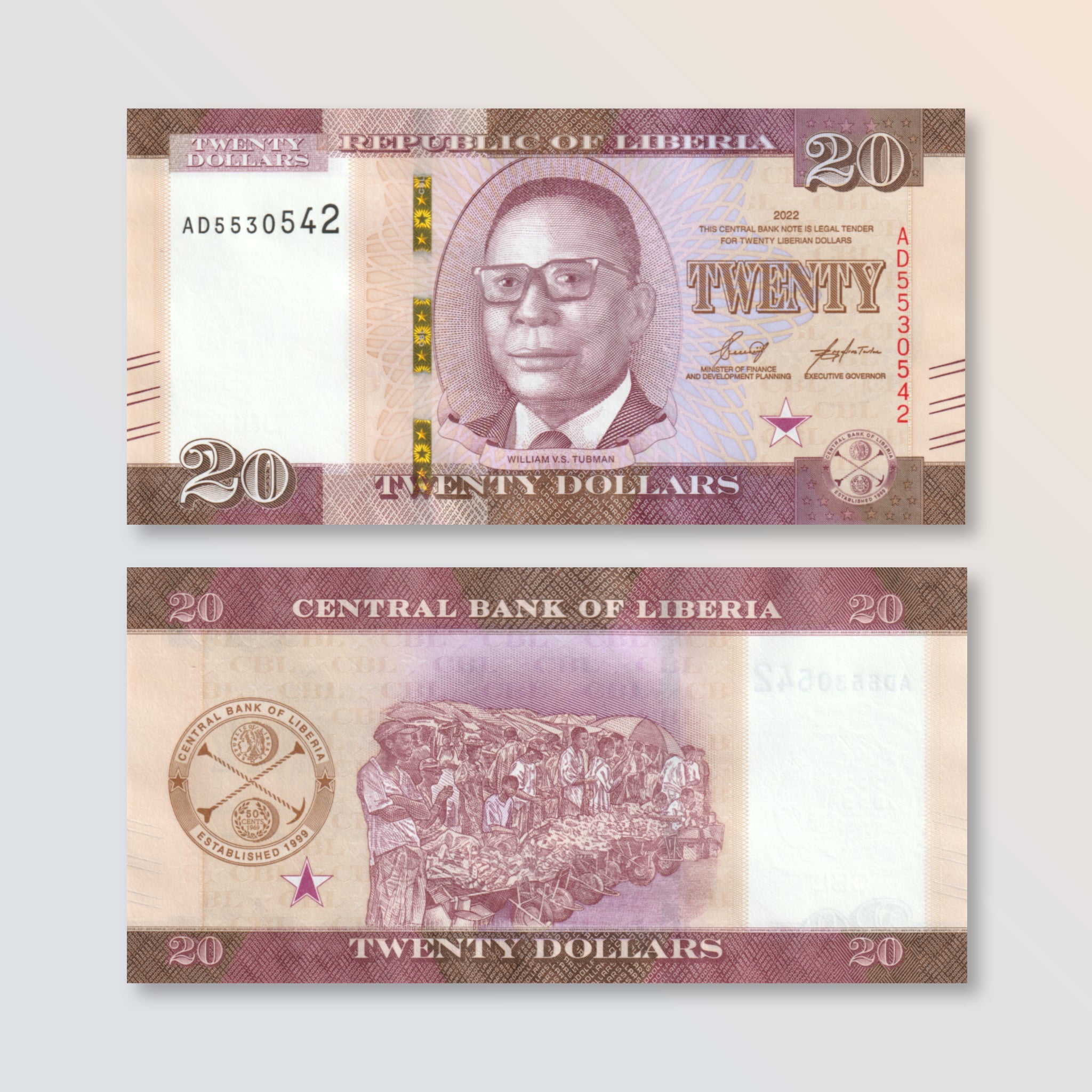 Front: Liberia's 18th president William Vacanarat Shadrach Tubman; 5-pointed star as registration device; bank seal.