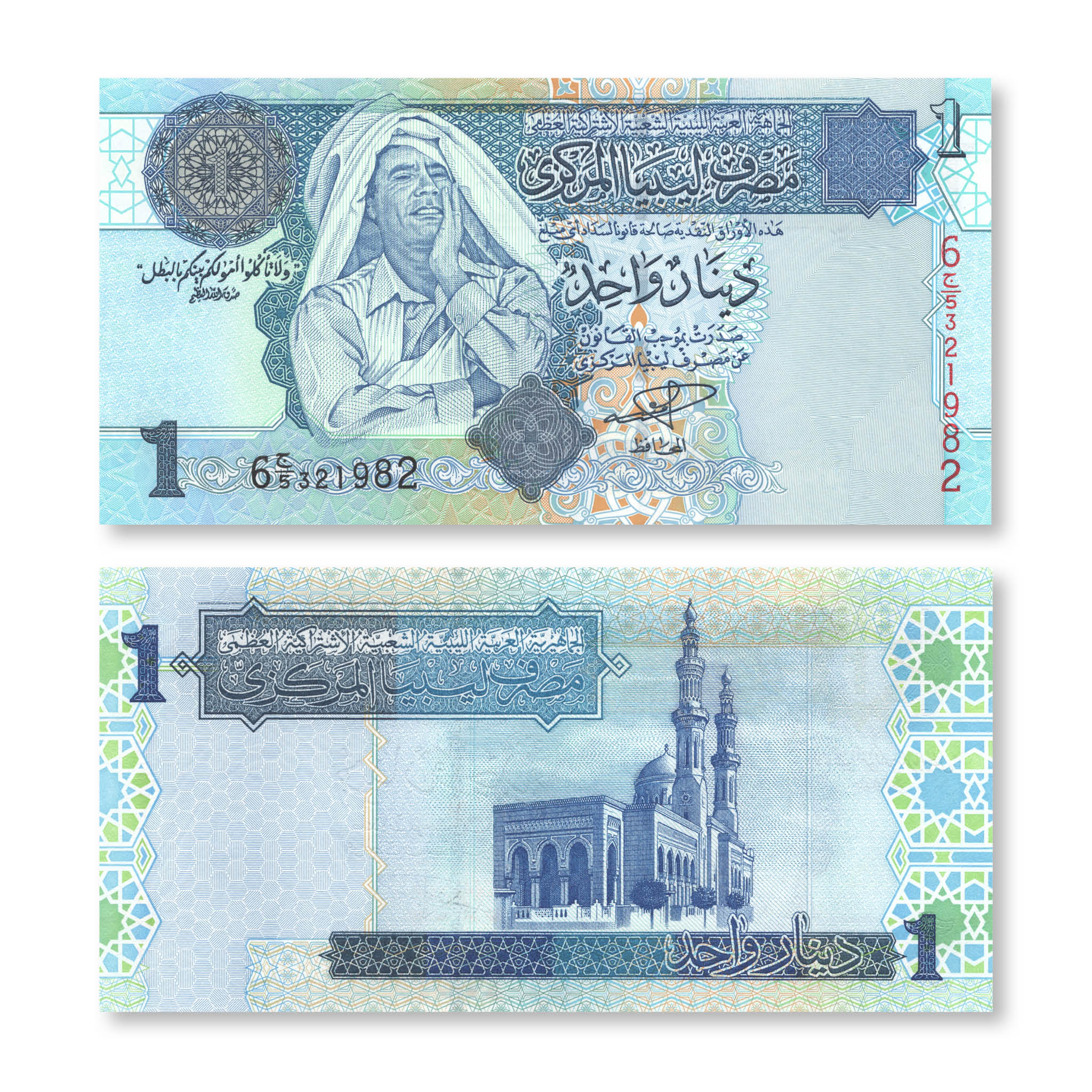 Libya 1 Dinar, 2004, Qaddafi, B531a, P68a, UNC