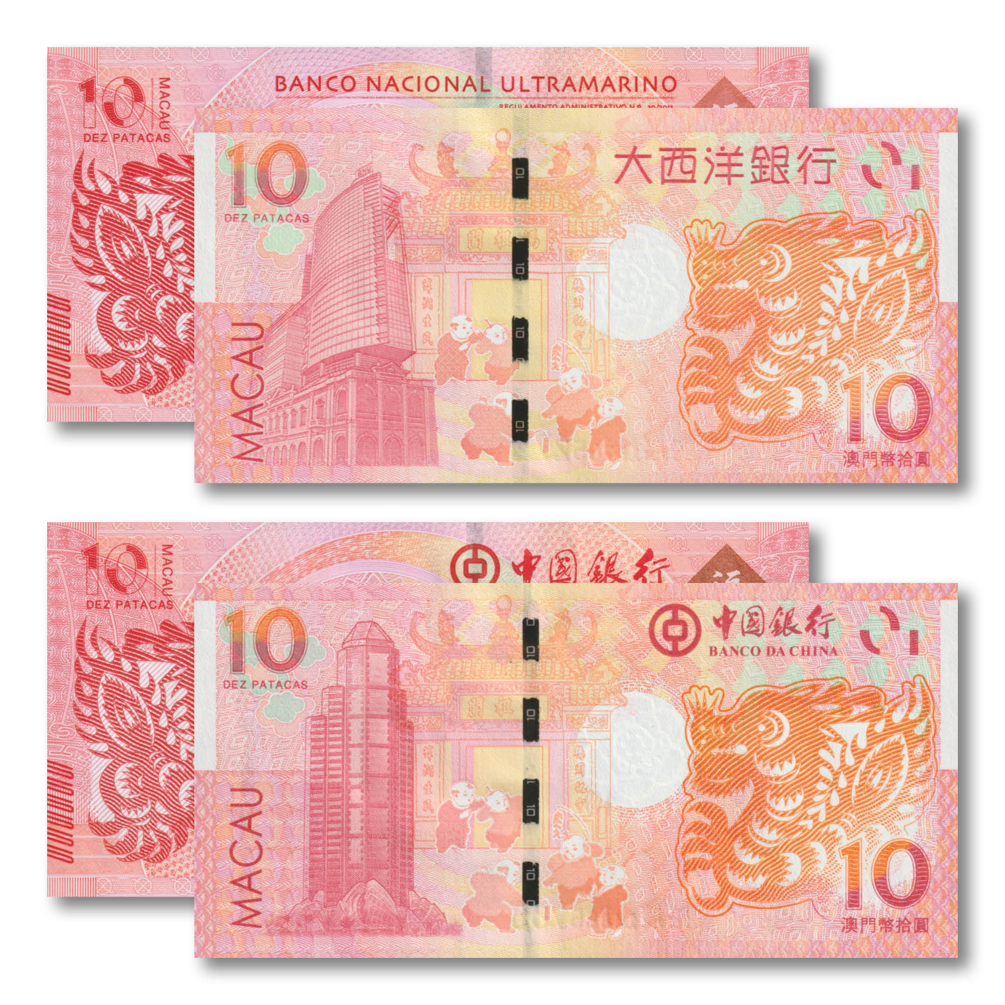 This is a pair of banknotes commemorating the Year of the Dragon, issued in 2012.