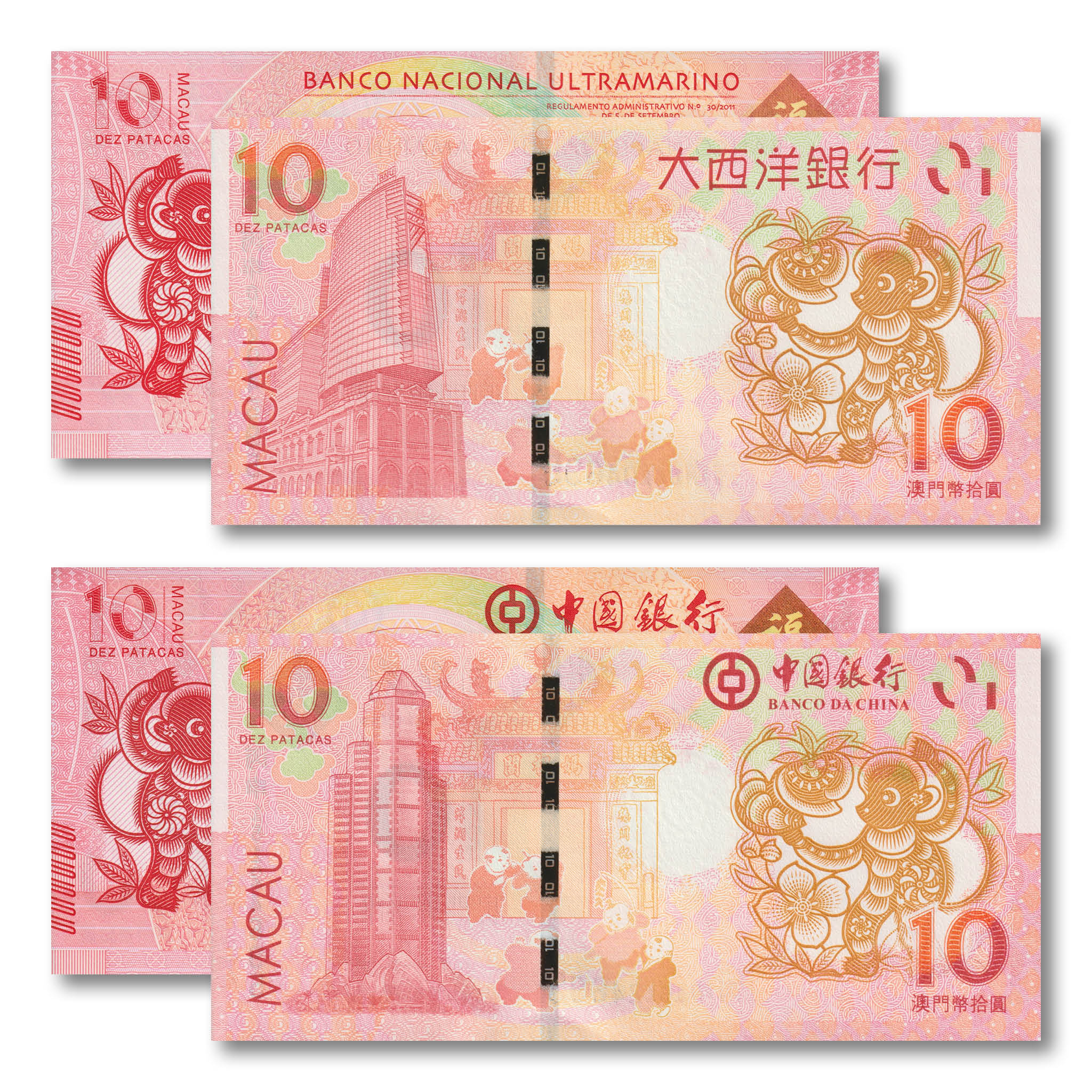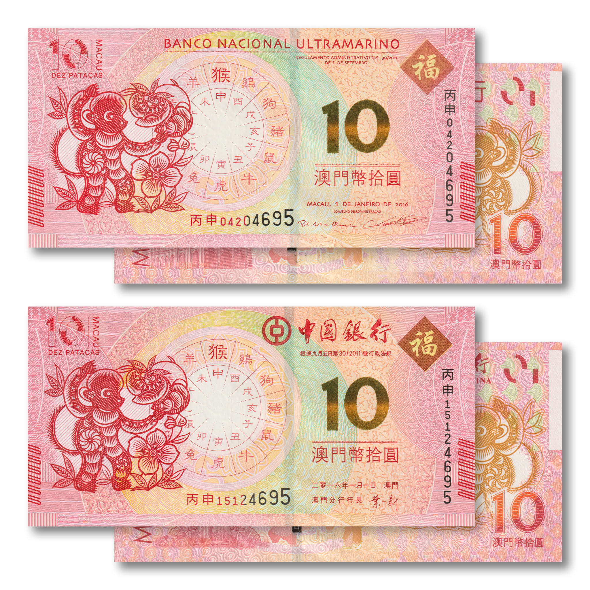 This is a pair of banknotes commemorating the Year of the Monkey, issued in 2016.