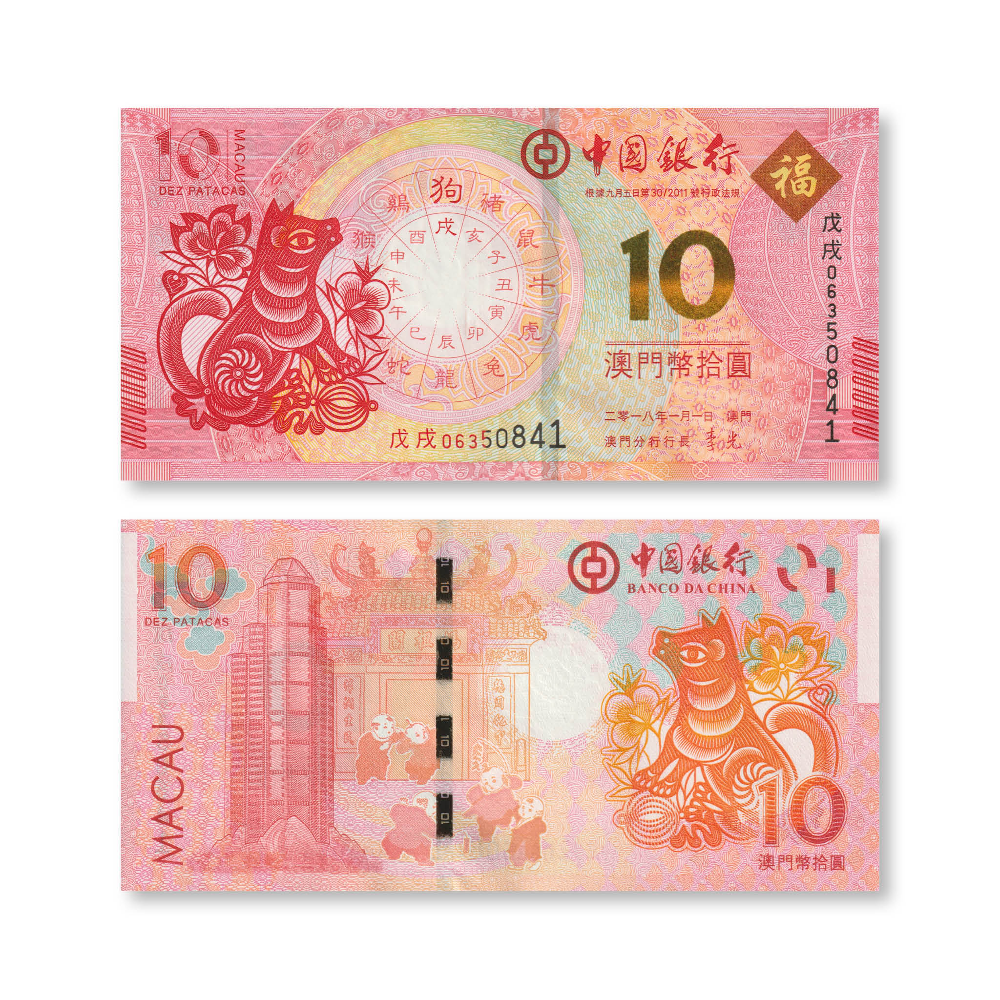 This is a pair of banknotes commemorating the Year of the Dog, issued in 2018.