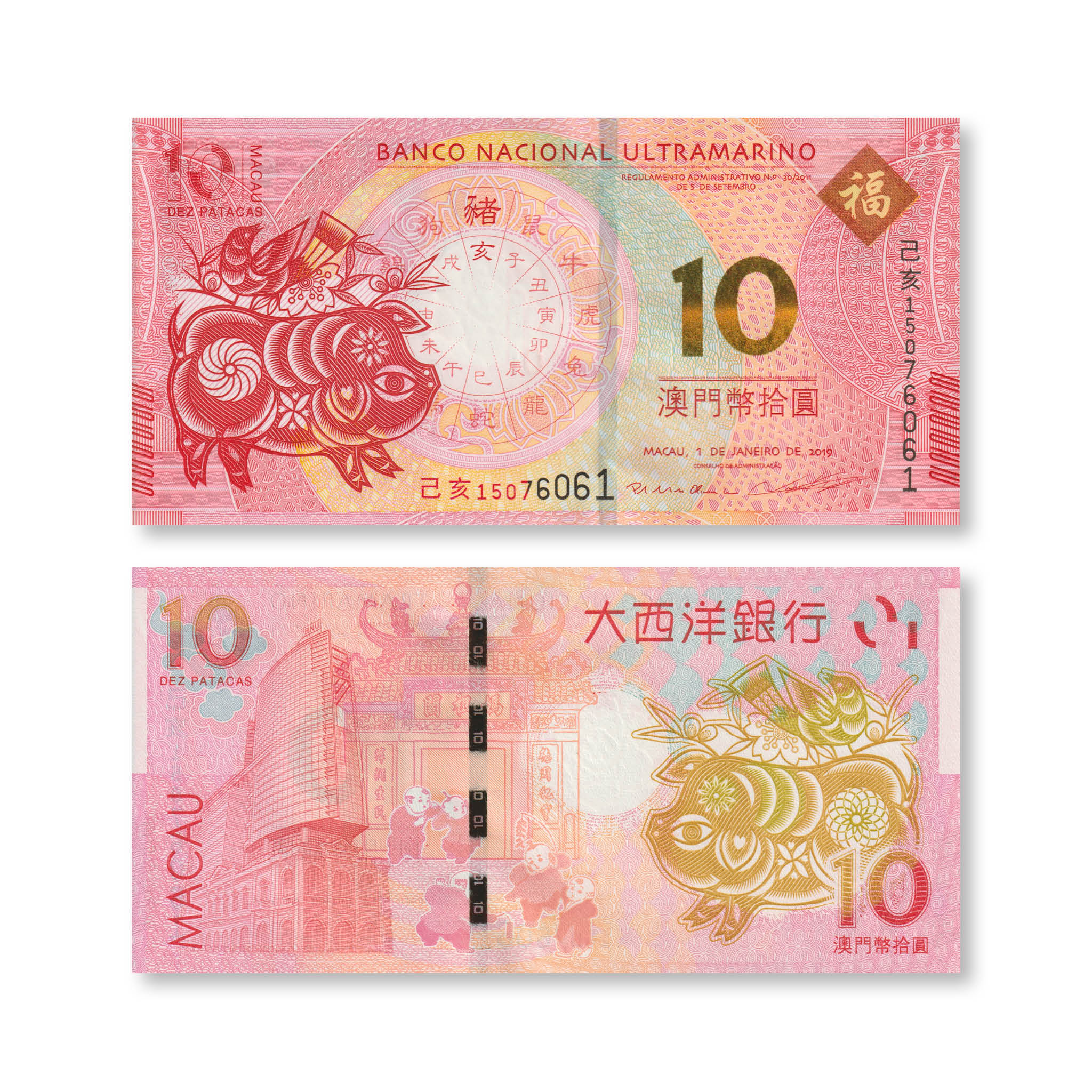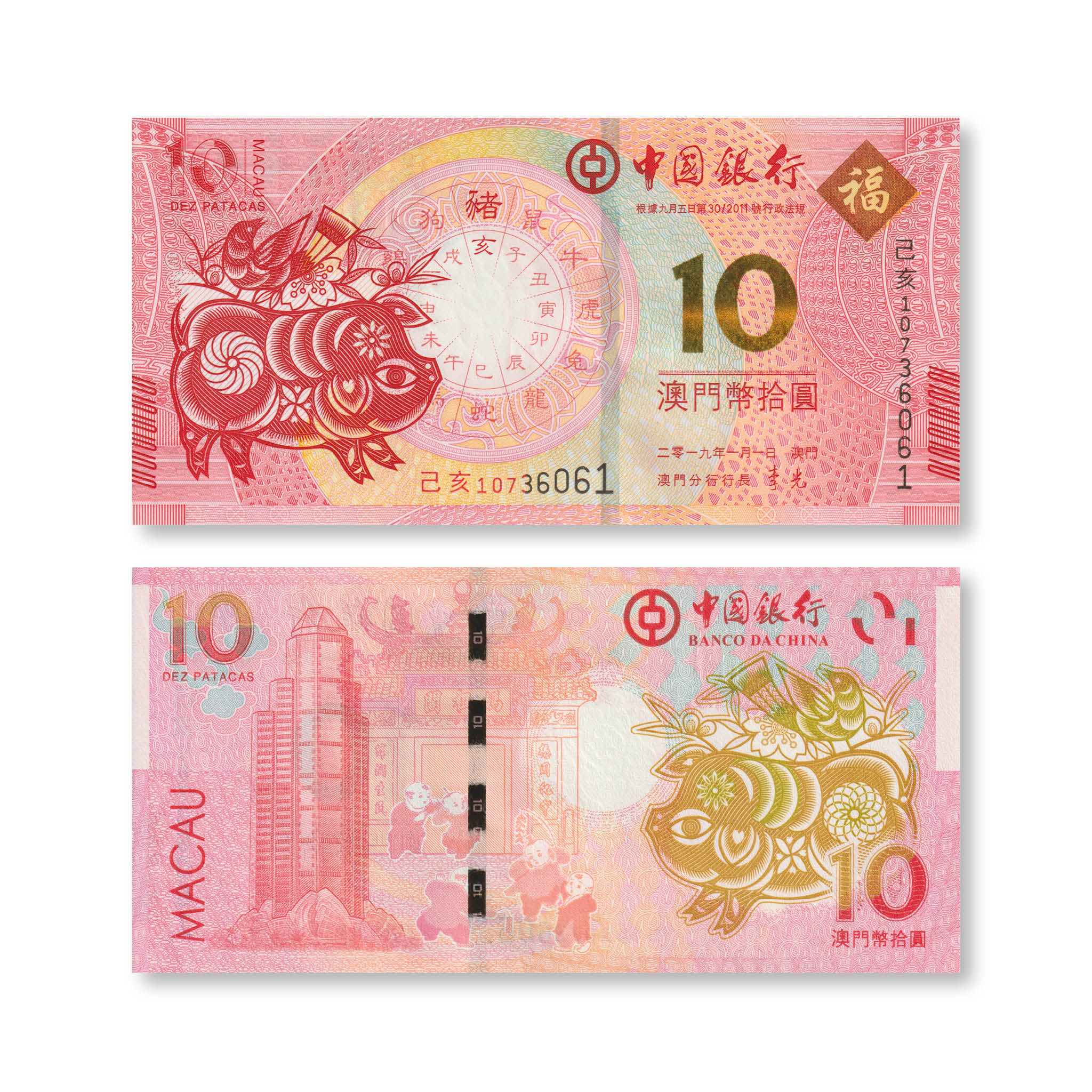 This is a pair of banknotes commemorating the Year of the Pig, issued in 2019.