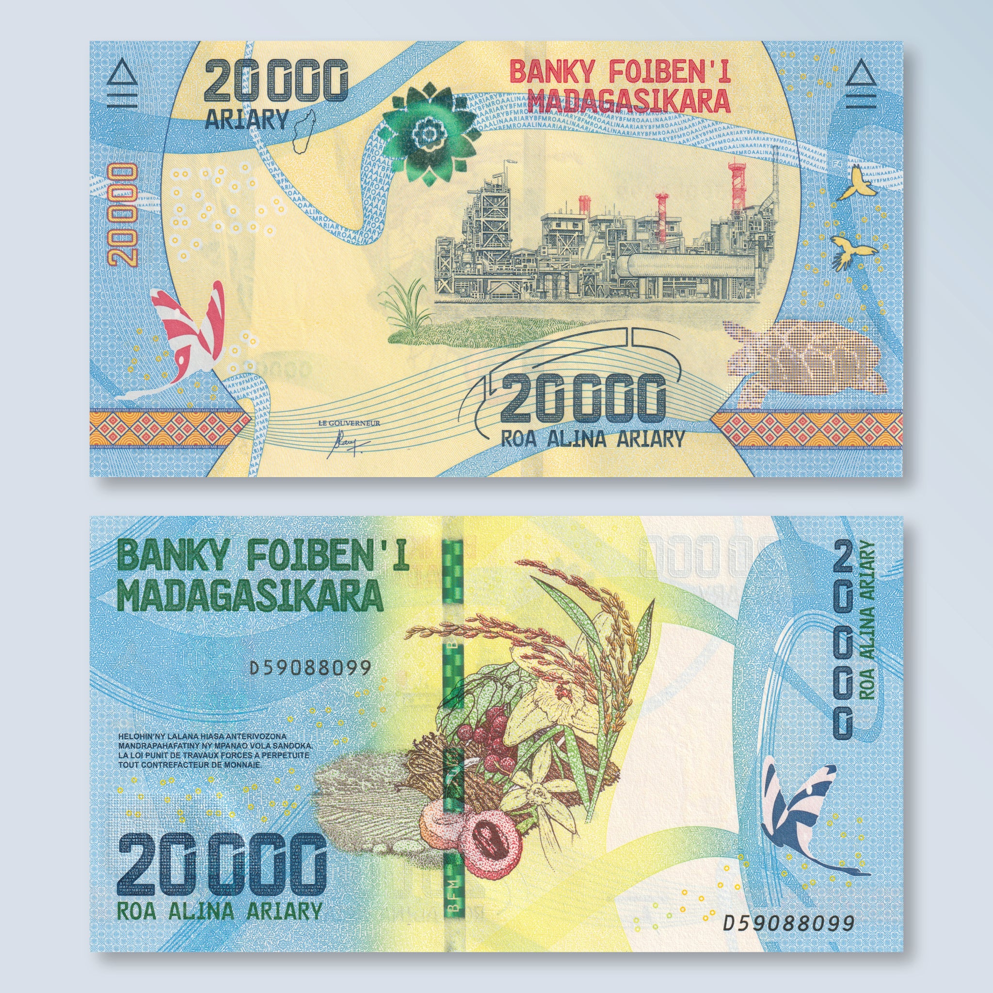 Front: Nickel processing plant in Ambatovy; flower in SPARK Orbital OVI patch; turtle; two birds in flight; map of Madagascar; butterfly as registration device.