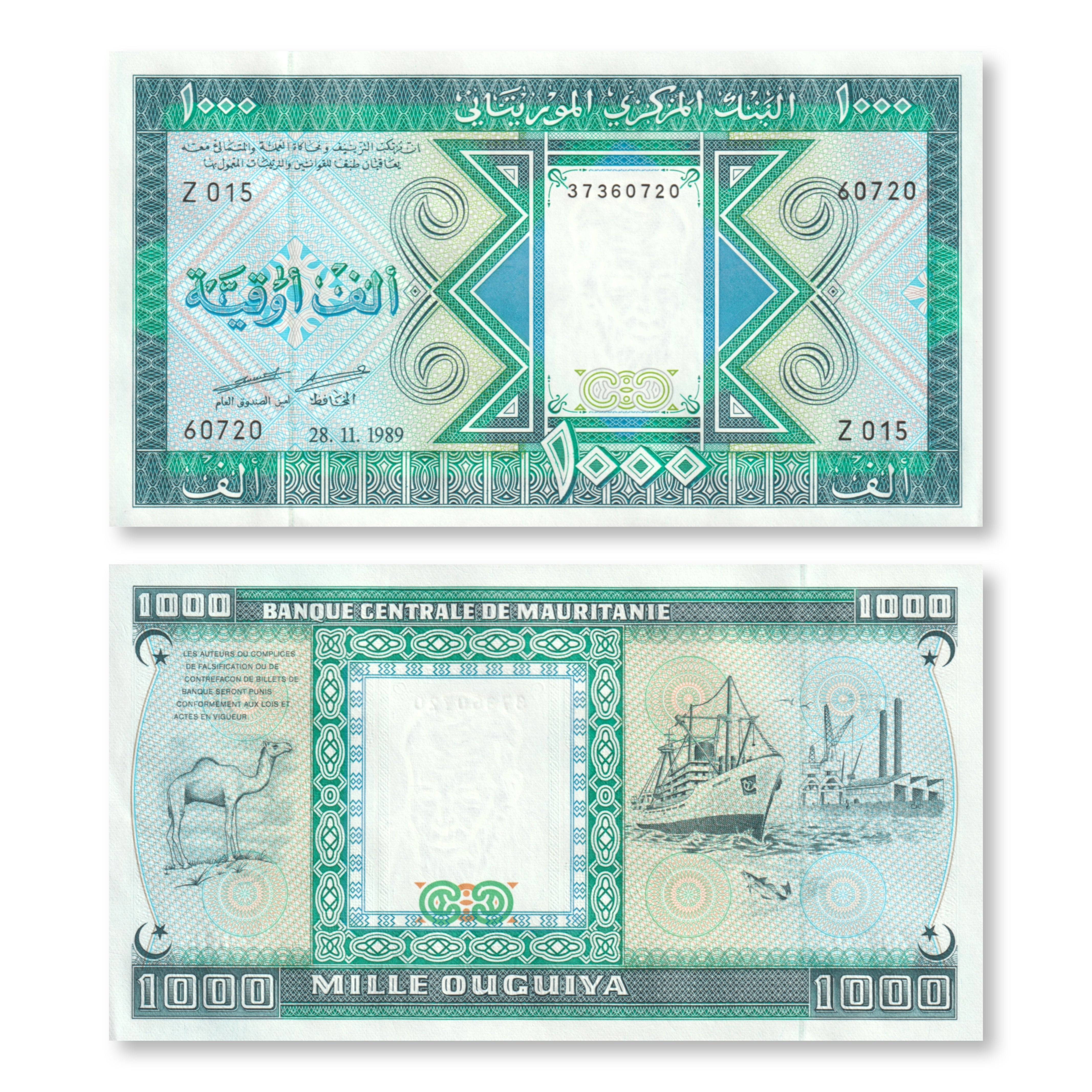 Mauritania 1000 Ouguiya, Unissued, 1989, B111.5a, UNC