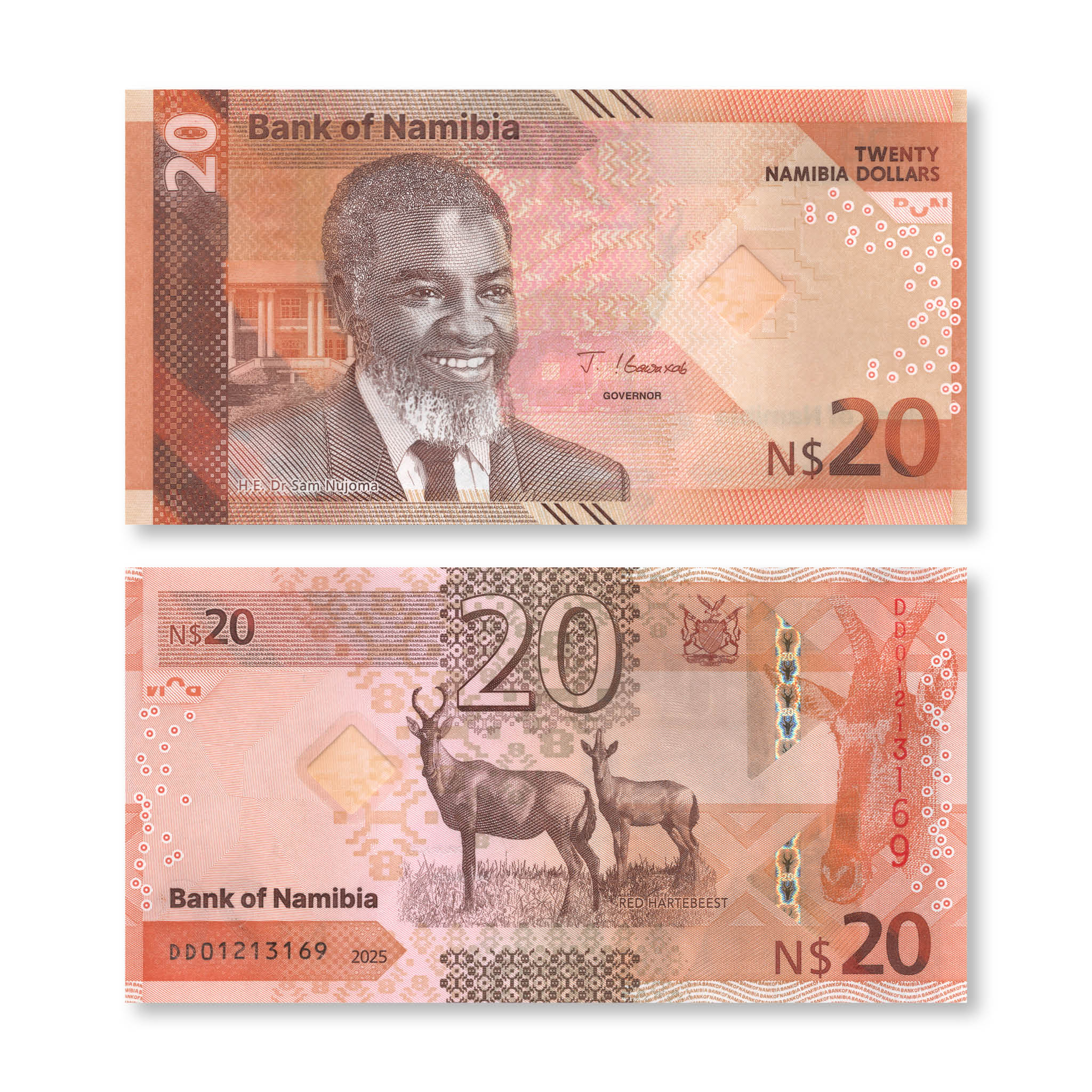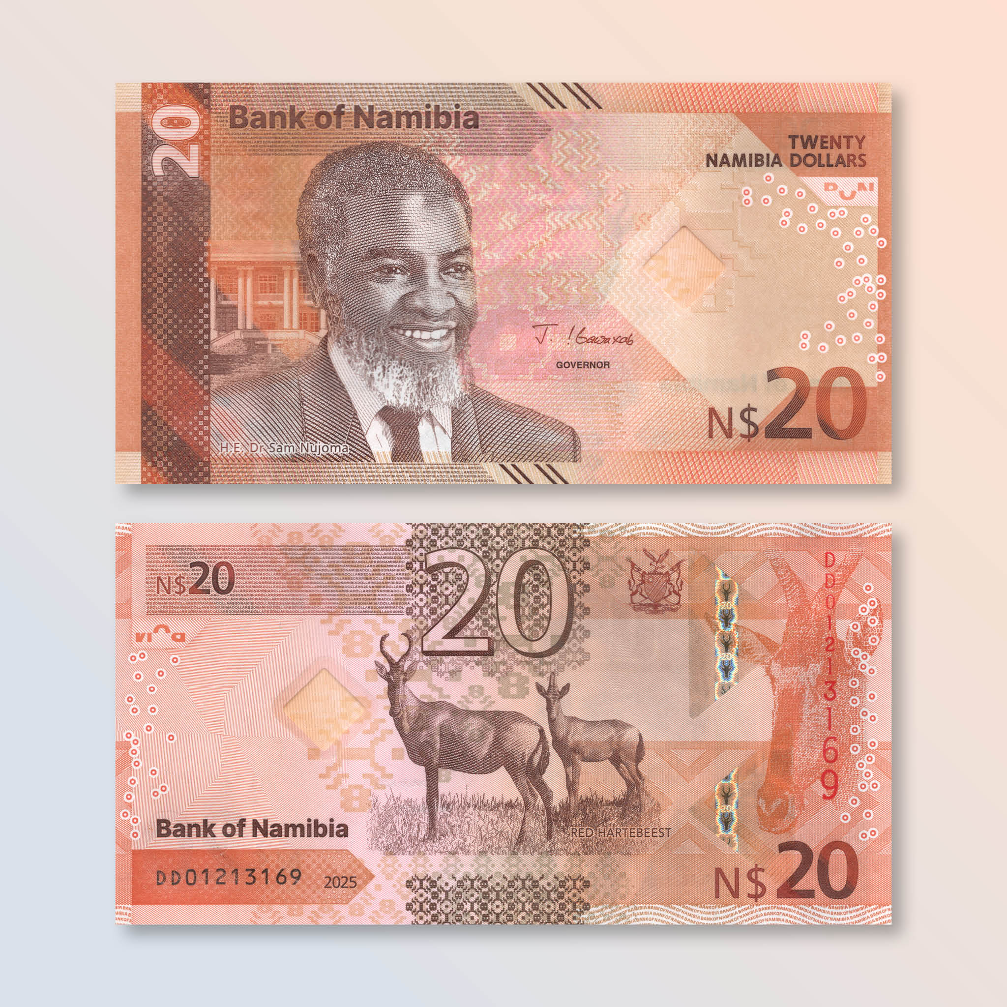 Namibia 20 Dollars, New 2025 Series, B221a, UNC