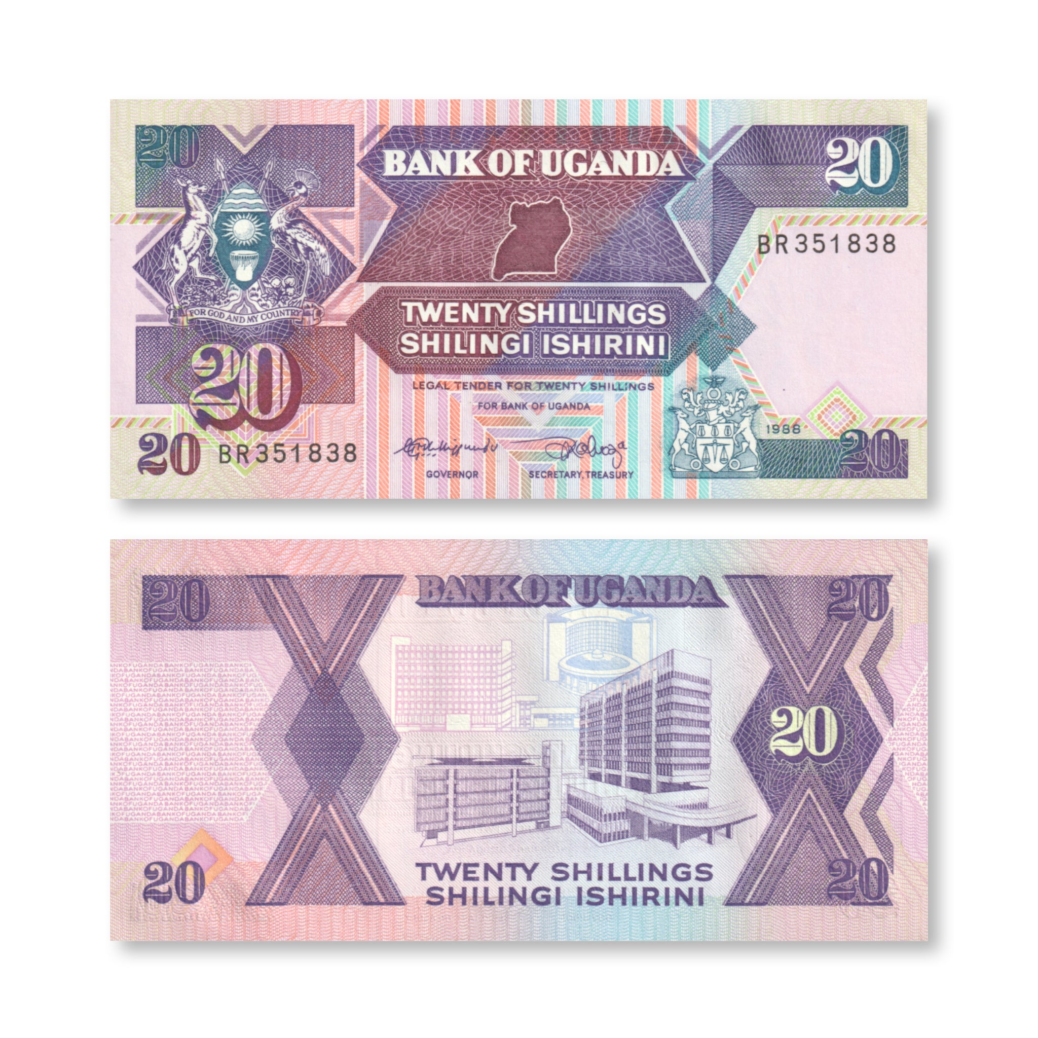 Uganda 20 Shillings, 1988, B133b, P29b, UNC
