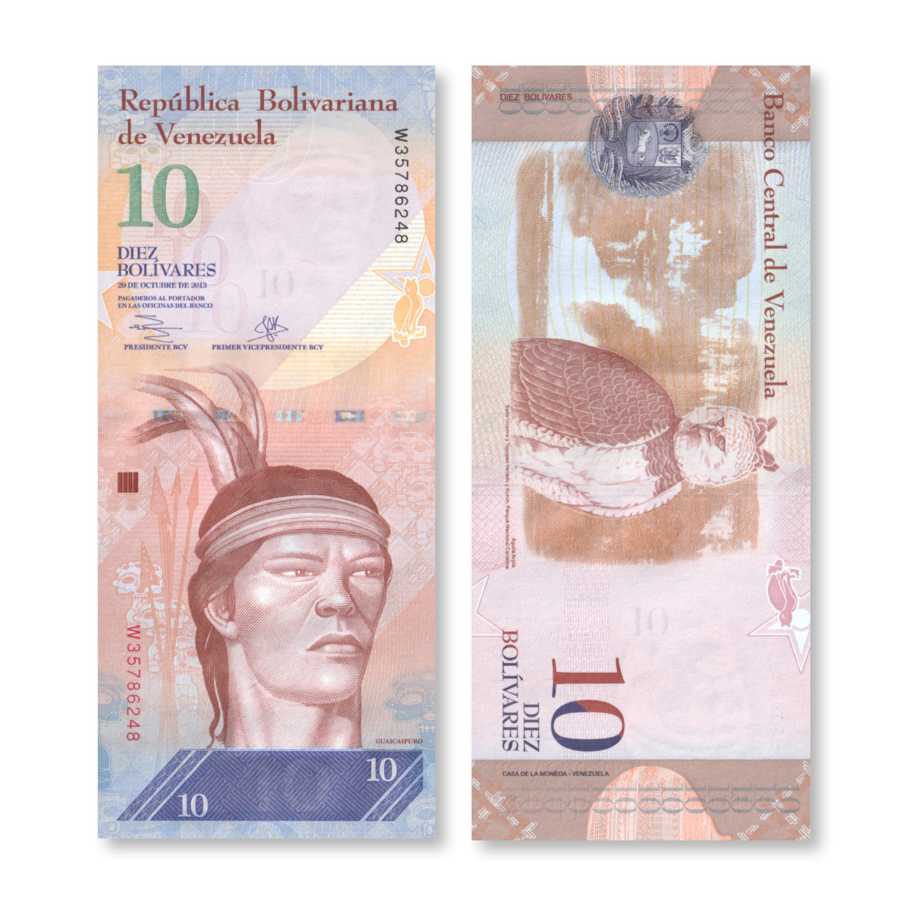 Venezuela 10 Bolívares Fuertes, 2013, B360d, P90d, UNC