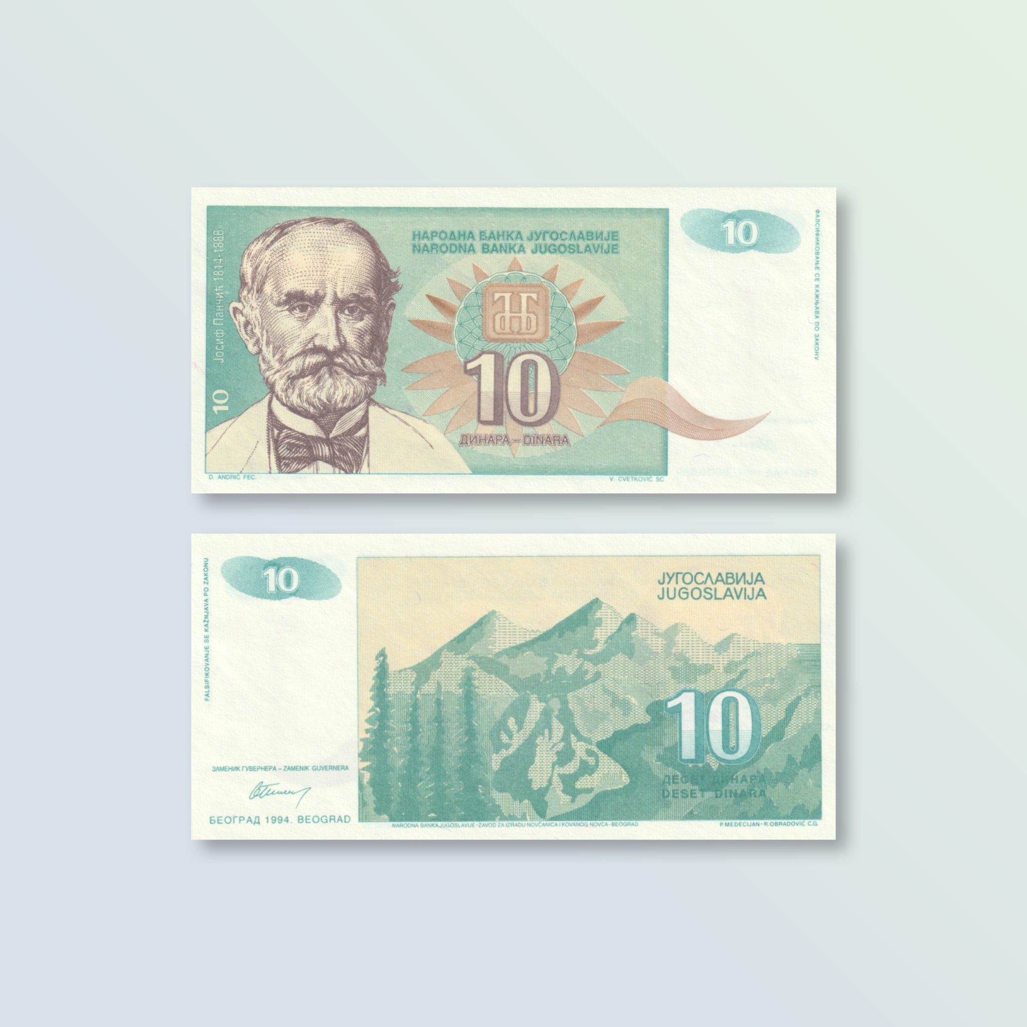Front: Portrait of Josif Pančić (1814–1888) a Serbian botanist, a doctor of medicine, and the first president of the Serbian Royal Academy; National Bank of Yugoslavia bank seal.