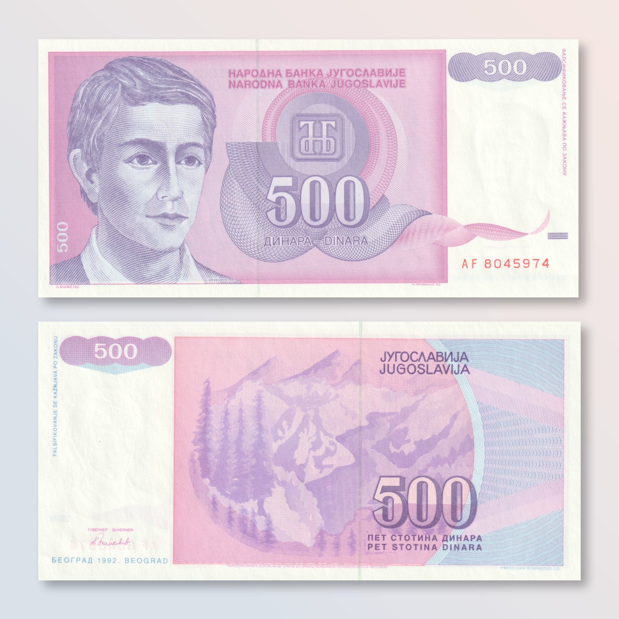 Front: Portrait of a young man; National Bank of Yugoslavia bank seal.