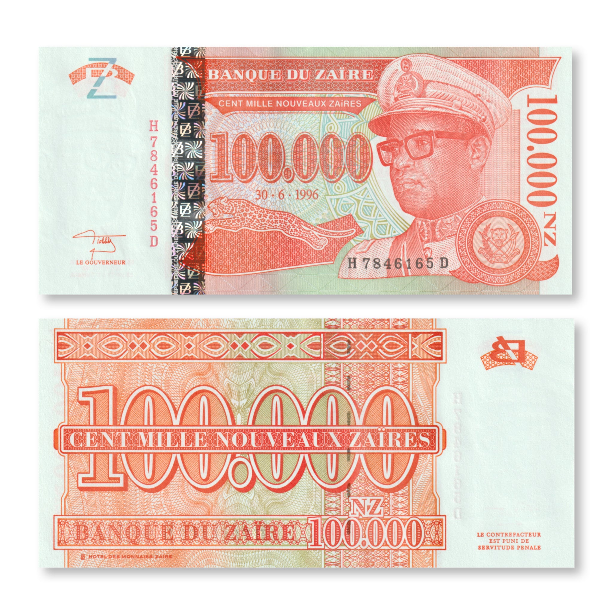 Front: Mobuto Sese Seko in uniform with cap; leopard; coat of arms; bank monogram as registration device.