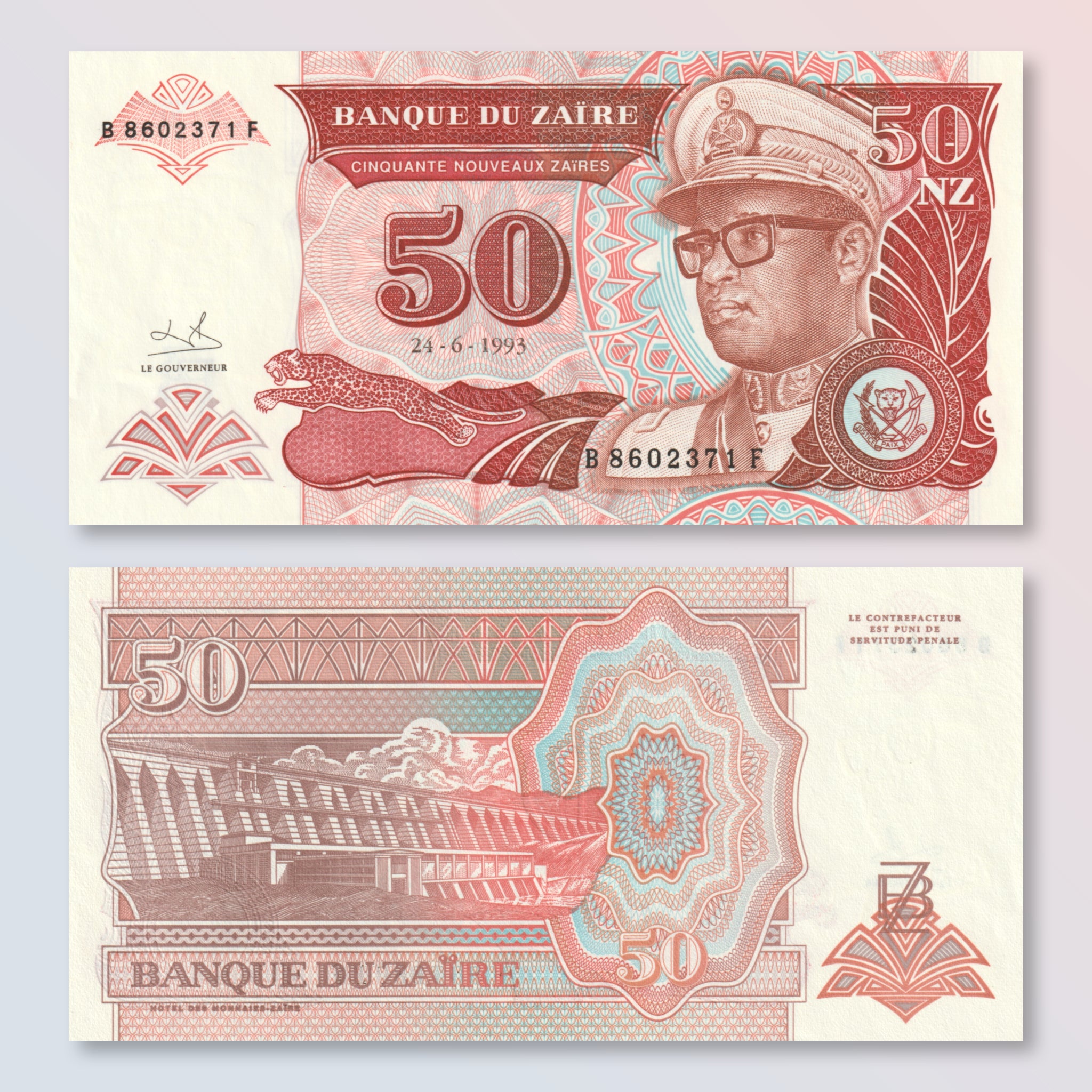 Back: Inga I hydroelectric dam on the Congo river; bank monogram.